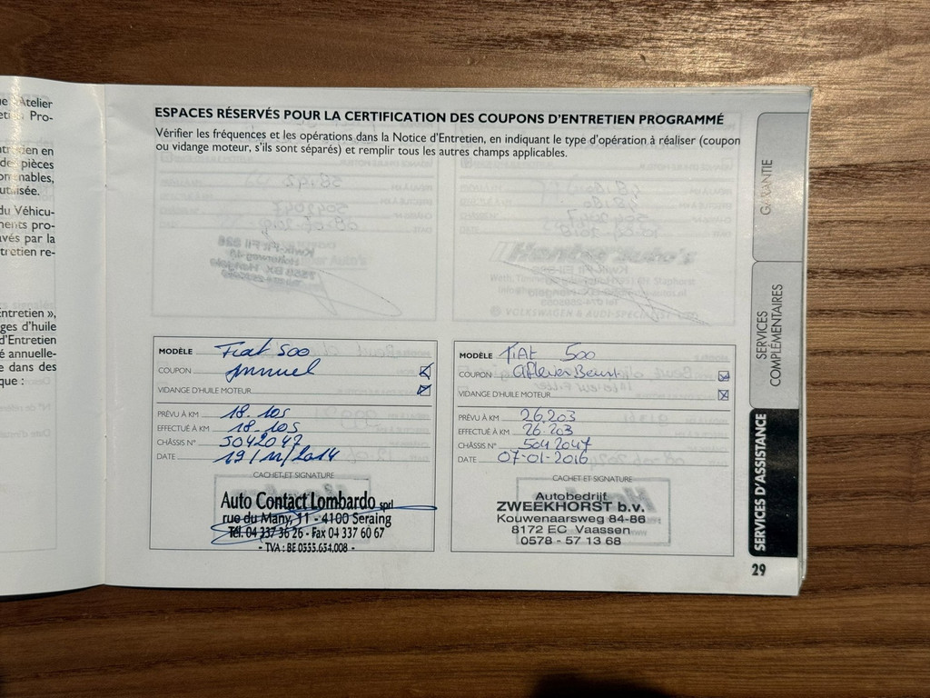 De Fiat 500 werd onlangs bij ons ingeruild door een dame die auto bijna vijf jaar in bezit had. Alle documentatie en beide sleutels zijn voorhanden. Het onderhoudsboekje is volledig ingevuld en daarnaast zijn er zeer veel facturen voor specificering van hetgeen er uitgevoerd is. Echt een auto die duidelijk met zorg en liefde behandeld en bereden is.
