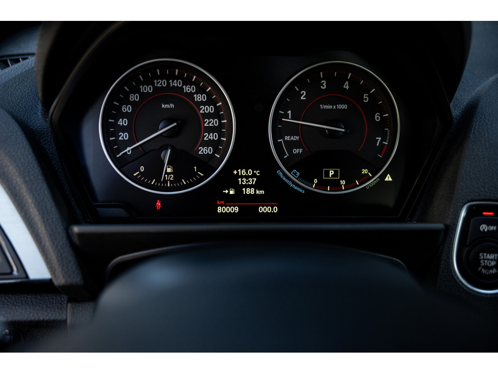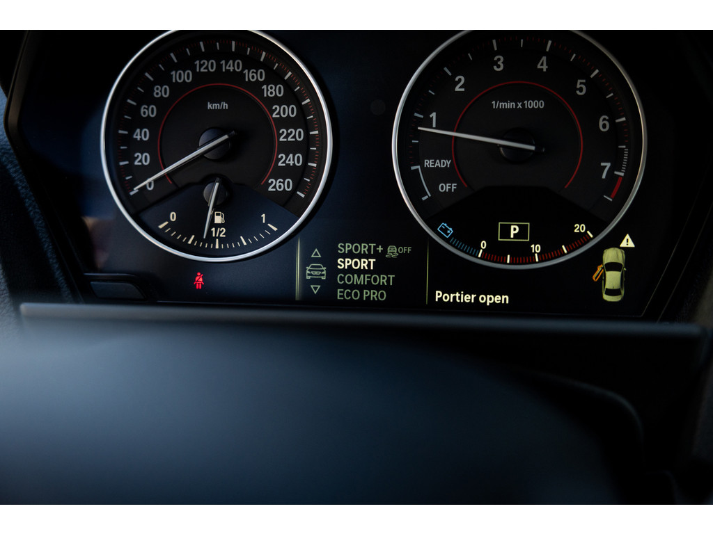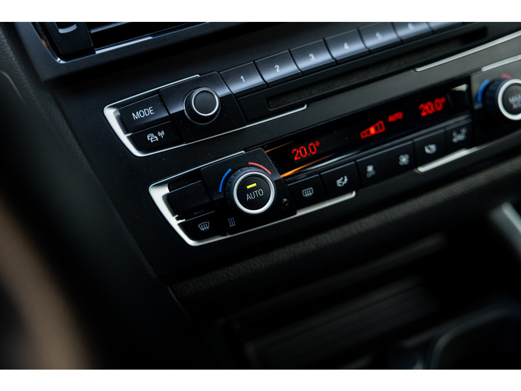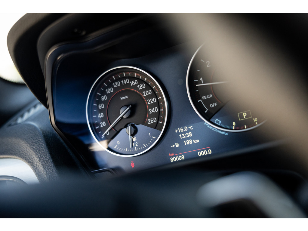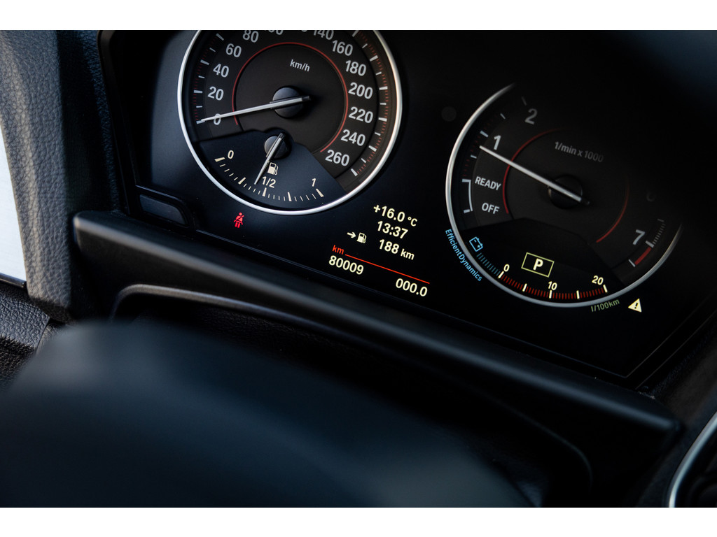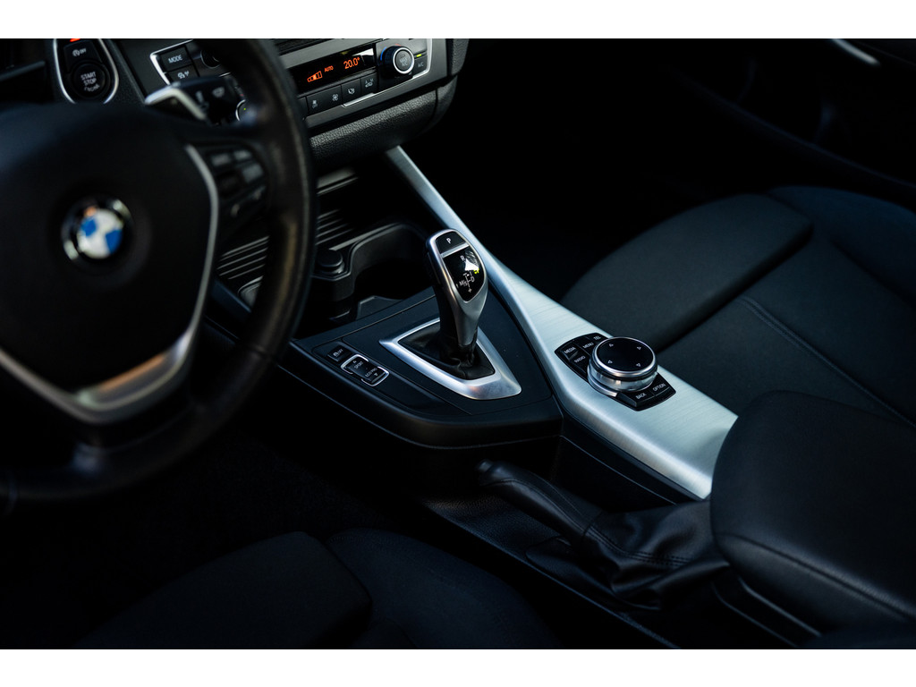 Binnenin zetel je op sportstoelen bekleed in de gave Track bekleding. Het sportstuurwiel met stuurwielbediening ligt preetig in de hand en boven je prijkt de zwarte hemelbekleding. In deze luxe Executive uitvoering beschikt de BMW over dual zone climate control, cruise control, regensensor, parkeersensoren en het Navigation Professional systeem met het brede centrale display. Het systeem voorziet in navigatie met 3D kaartweergave, bluetooth telefonie en audiostreaming en legio instellingen. Uiteraard beschikt de auto over bi-xenon verlichting met LED verlichting rondom. Heel praktisch en volledig uit het zicht is de af fabriek geleverde afneembare trekhaak.