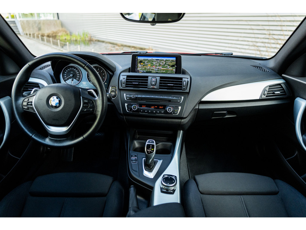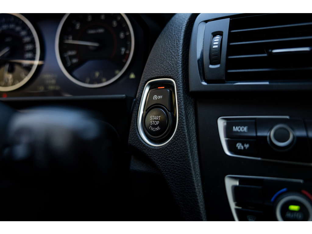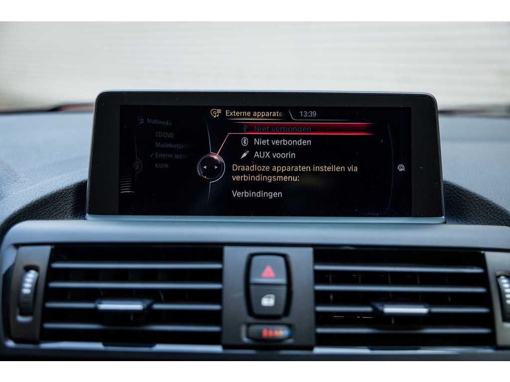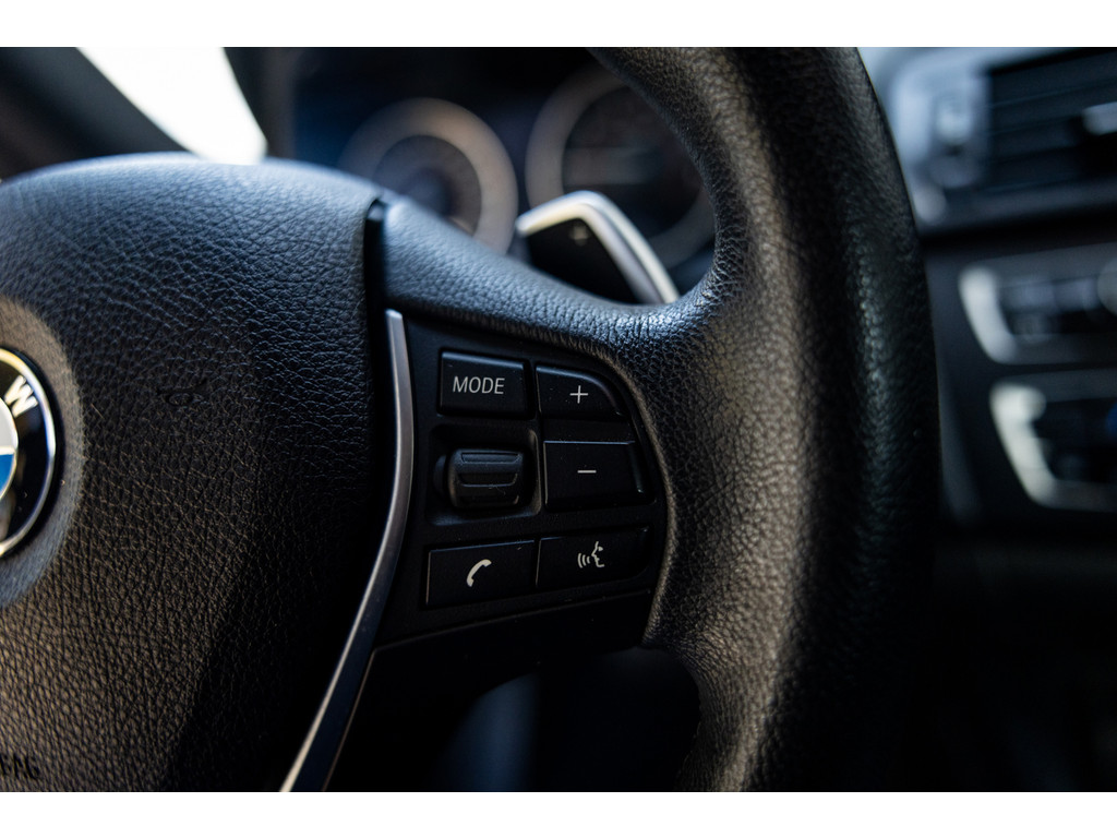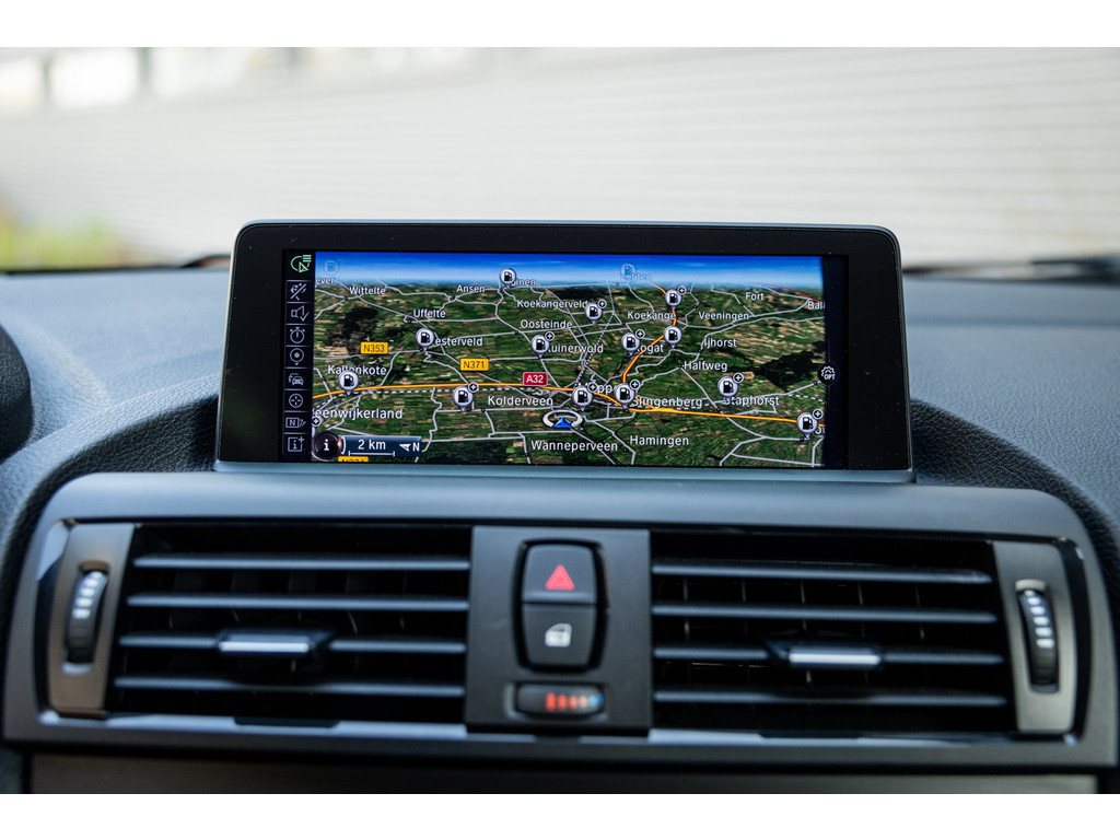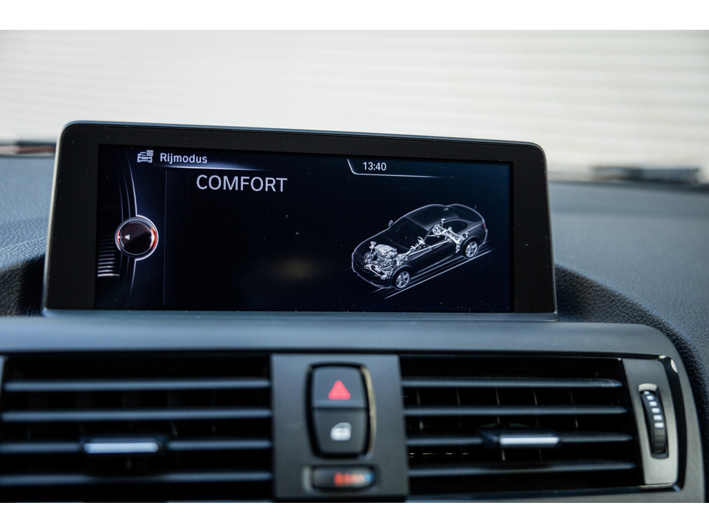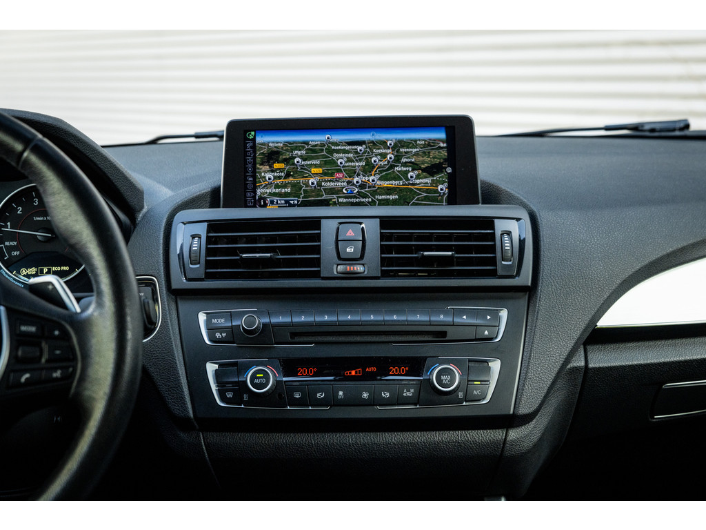 Binnenin zetel je op sportstoelen bekleed in de gave Track bekleding. Het sportstuurwiel met stuurwielbediening ligt preetig in de hand en boven je prijkt de zwarte hemelbekleding. In deze luxe Executive uitvoering beschikt de BMW over dual zone climate control, cruise control, regensensor, parkeersensoren en het Navigation Professional systeem met het brede centrale display. Het systeem voorziet in navigatie met 3D kaartweergave, bluetooth telefonie en audiostreaming en legio instellingen. Uiteraard beschikt de auto over bi-xenon verlichting met LED verlichting rondom. Heel praktisch en volledig uit het zicht is de af fabriek geleverde afneembare trekhaak.